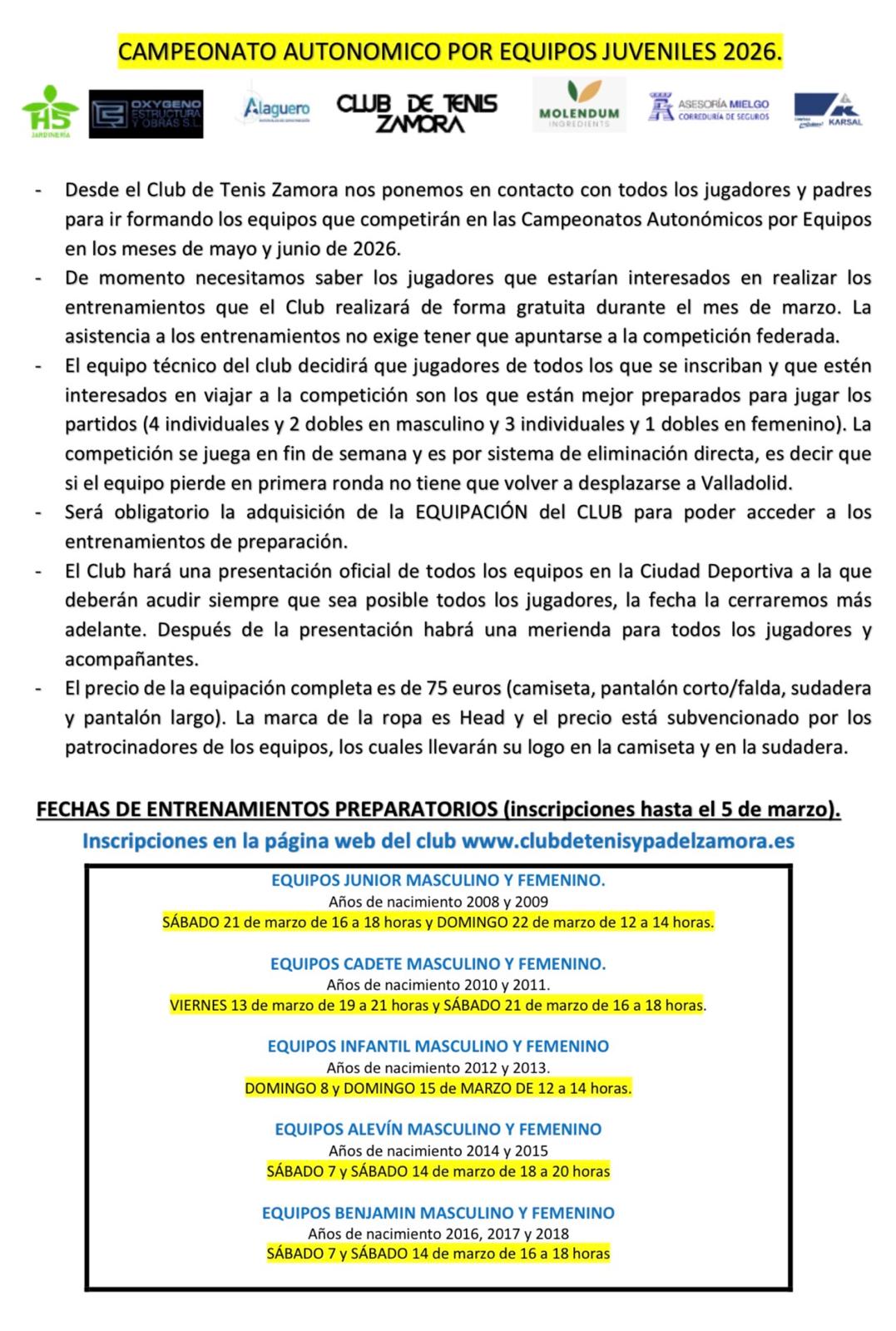 EQUIPOS JUVENILES 2026